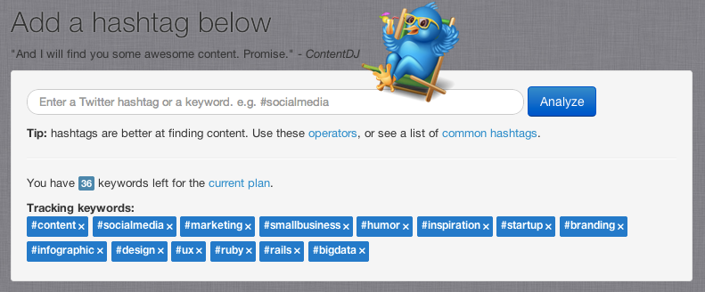 Borrowing from personal experience Tian sees real value in curating and sharing quality content as a lead generation process for startups and small business. ContentDJ can grow an online presence, and has automated the process of identifying and sharing trending content to be more engaging with a potential audience of customers. Using a proprietary algorithm Tianâs platform helps sort content based on itâs timeliness, relevance and quality to easily identify the most shareable stories and information.