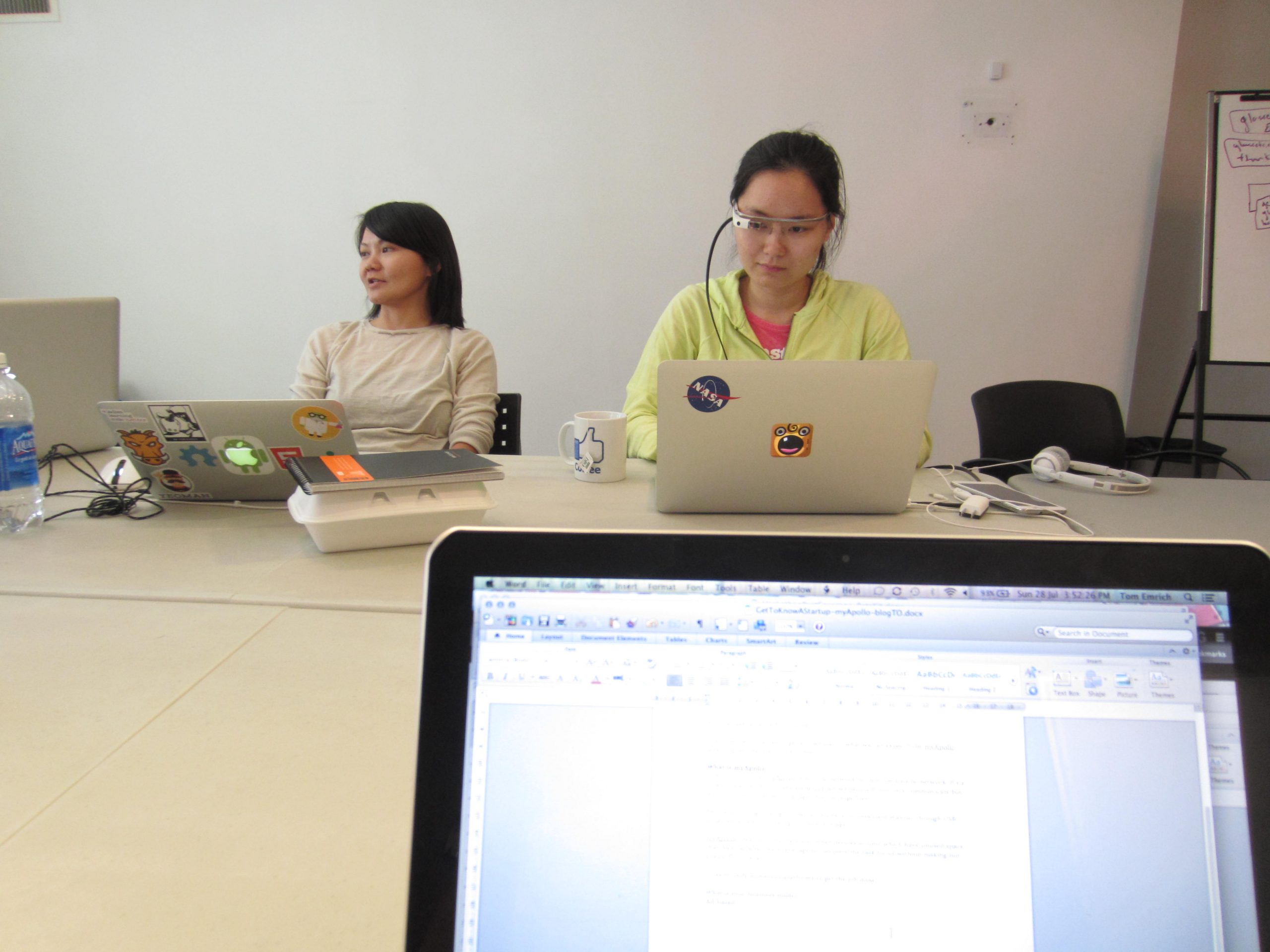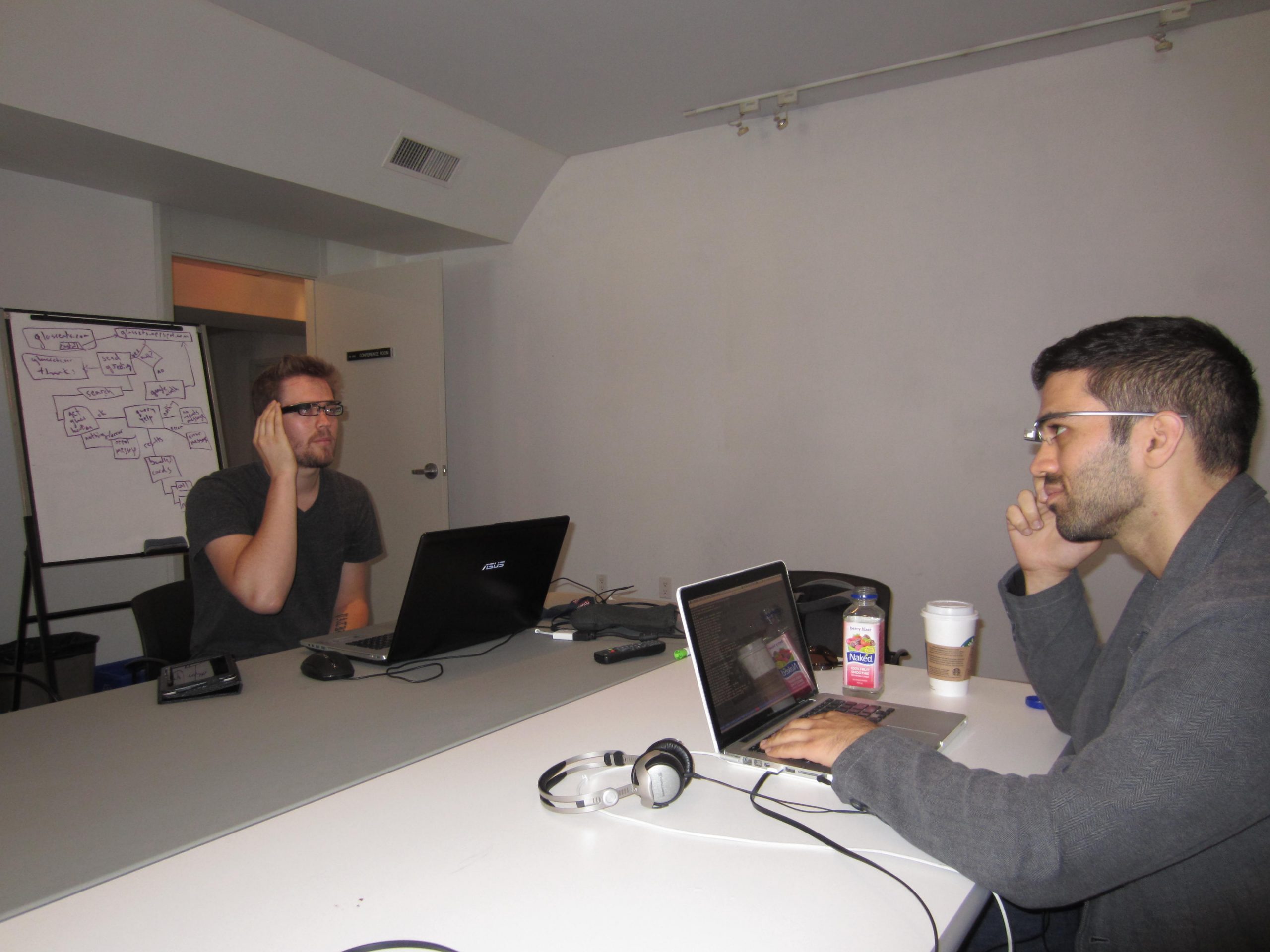 Four of about ten Google Glass Explorers in Canada were teamed up with developers and designers to conceptualize and develop applications. All four of the teams successfully presented a working demo of their apps at the end of the event – and all four apps were a first of their kind for this device.
