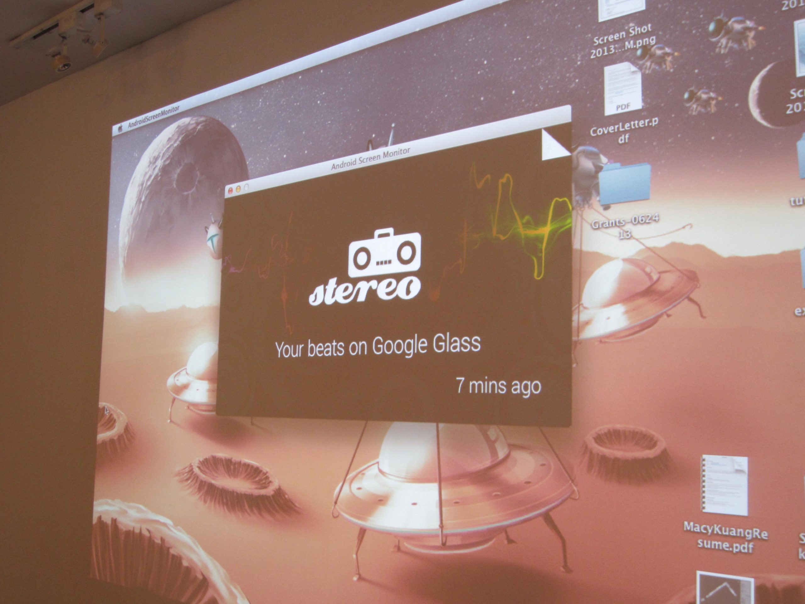 Stereo, a music streaming app that plays music from SoundCloud, was created by a team led by CTO of Spently, Jean-Luc David. As audio streaming was not something that could be coded out of the box, this app had perhaps the most challenging road to develop. Stereo allows Glass users to search for an artist or music genre using Glassâ voice search feature and then returns a playlist from SoundCloud which can be heard through the bone-conducting headset.